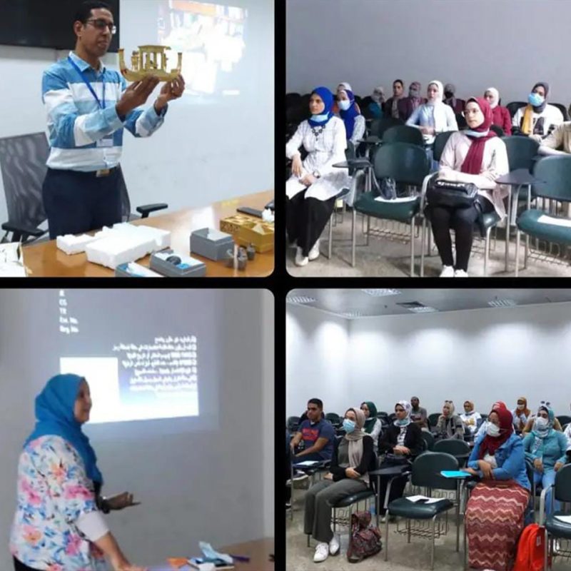 Trainees received a lecture on Ancient DNA research in archeology was conducted by Prof. Dr. Yahya Gad, DNA professor at the National Research Center. They also visited the DNA laboratory at the National Museum of Egyptian Civilization and listened to a detailed explanation about its equipment and significance. They then visited the Carbon dating Laboratory and listened to a full explanation from Mohamed El-Gharbawy, the laboratory director on Carbon dating uses in the field of archeology.